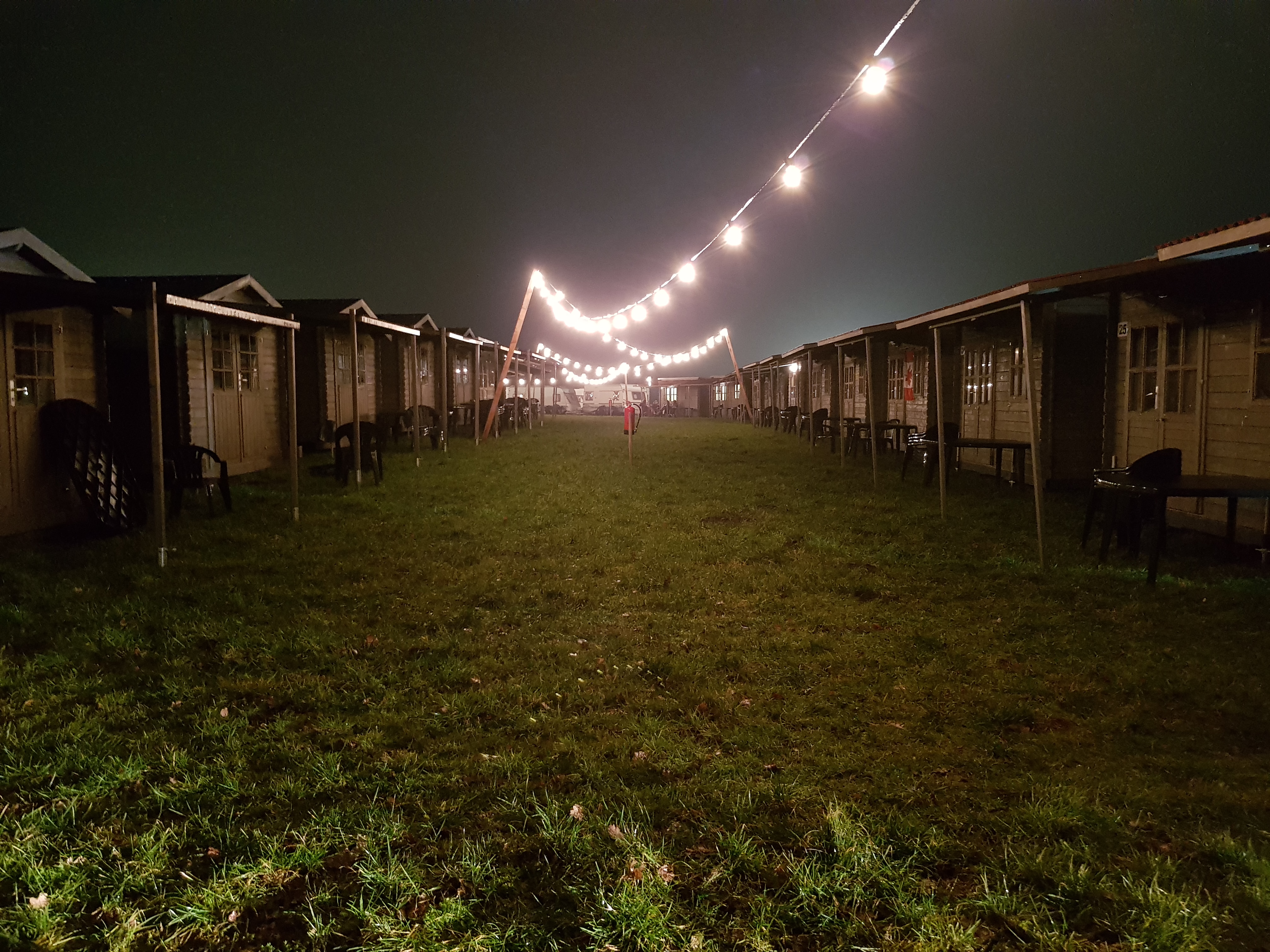 The weather was a little poor on the Thursday, but the ground was still pretty good, and those camping seemed to not have many issues setting up. For me in one of the two huts, the heater was already on, there was fresh bedding, and the hut was lovely and clean. There was the option to get some free accessories such as cutlery and cleaning equipment, and there were tables and chairs for each hut as well. They also looked beautiful at night all lit up.
