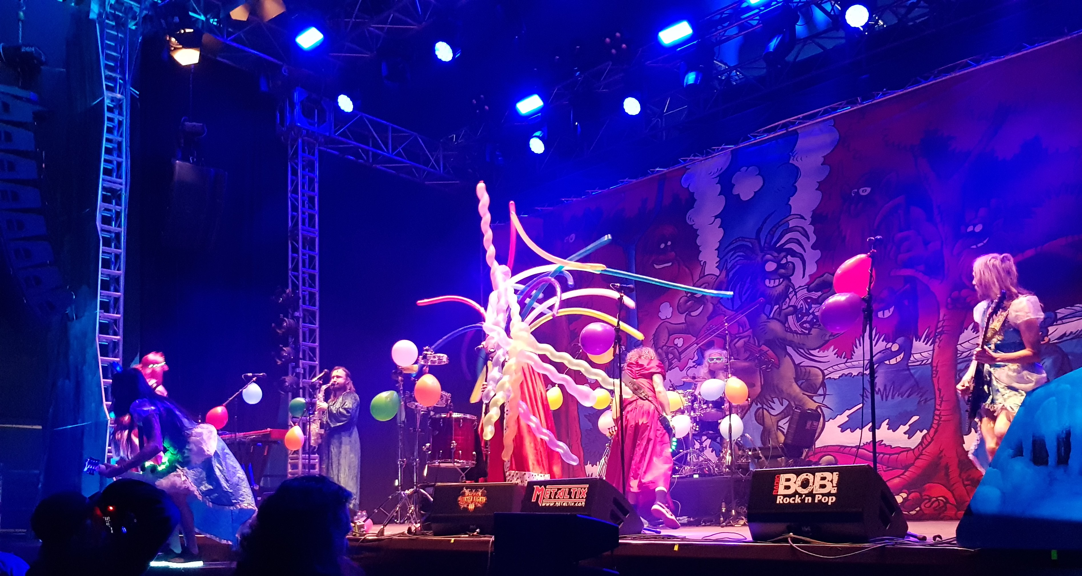 The first band on the main stages I saw, and probably band of the weekend for me, was TrollfesT (Facebook, Spotify, music and merch). The live set was amazing, it was so much fun, I danced myself silly at the barrier with my friend, and we have so many laughs. The instrumental was so polished, and the conga line which went all around the Ice Palace, headed by the bass player, was absolutely insane. I haven’t enjoyed myself that much during a live show for a very long time, and I was a little sad that I wasn’t seeing them in London on the Monday supporting Turisas and Korpiklaani, who were also playing the festival that day. What other band are you going to find wearing giant balloon hats and princess dresses on stage and totally owning it?