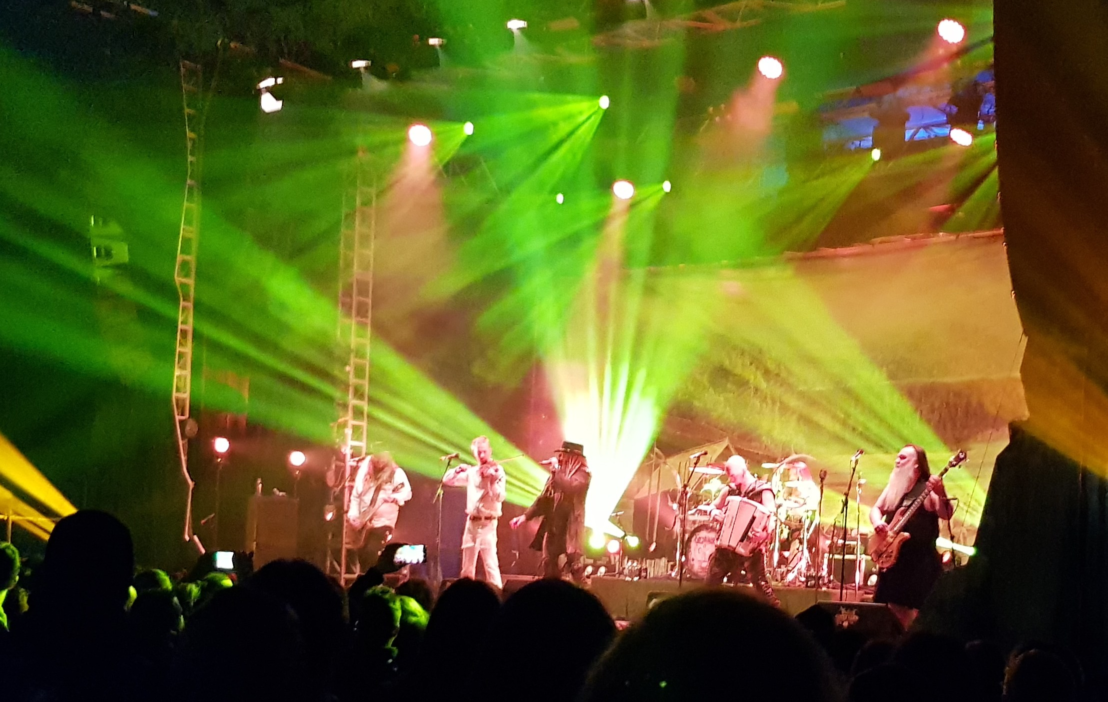 Korpiklaani (Facebook, Spotify, music and merch) were the Friday night headliners of the festival in the Ice Palace. They are very much a hit-and-miss band for me when they play live, and I was really sad that this time around was a big miss. They began their set with a lot of tracks from their latest release, Kulkija, which for me in itself wasn’t an issue as I love that album, but the lack of enthusiasm from the band in general was. The only band member who seemed to be happy to be there was Sami, the accordion player, and their fiddle player seemed to want to be elsewhere; when he wasn’t playing he would be standing completely still. I feel that if you’re not playing, you should be interacting with the crowd or at the very least moving in time to the music. The enthusiasm picked up a little towards the end when their more well-known and drinking songs were played, but sadly for me it was too little, too late. While I still love Korpiklaani’s recorded music, it leaves me questioning whether I would buy a ticket to see them at their own show, at the risk of being disappointed with the performance again.