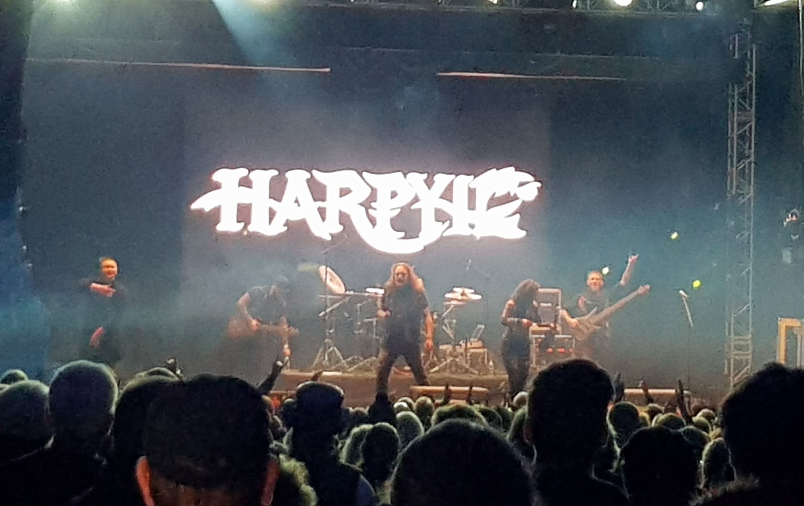 Saturday was probably my busiest and overall most exciting day of the festival. After a lovely night’s sleep in a comfortable bed and a nice bit of heat, it was time for another day. We headed down to the arena (on the slightly too long walk), and the first band I saw was Harpyie (Facebook, Spotify, music and merch). I didn’t see a lot of their set because it was a little too lazy a morning, but I did enjoy what I saw. They are another German band who are a part of the genre I have come to know is called