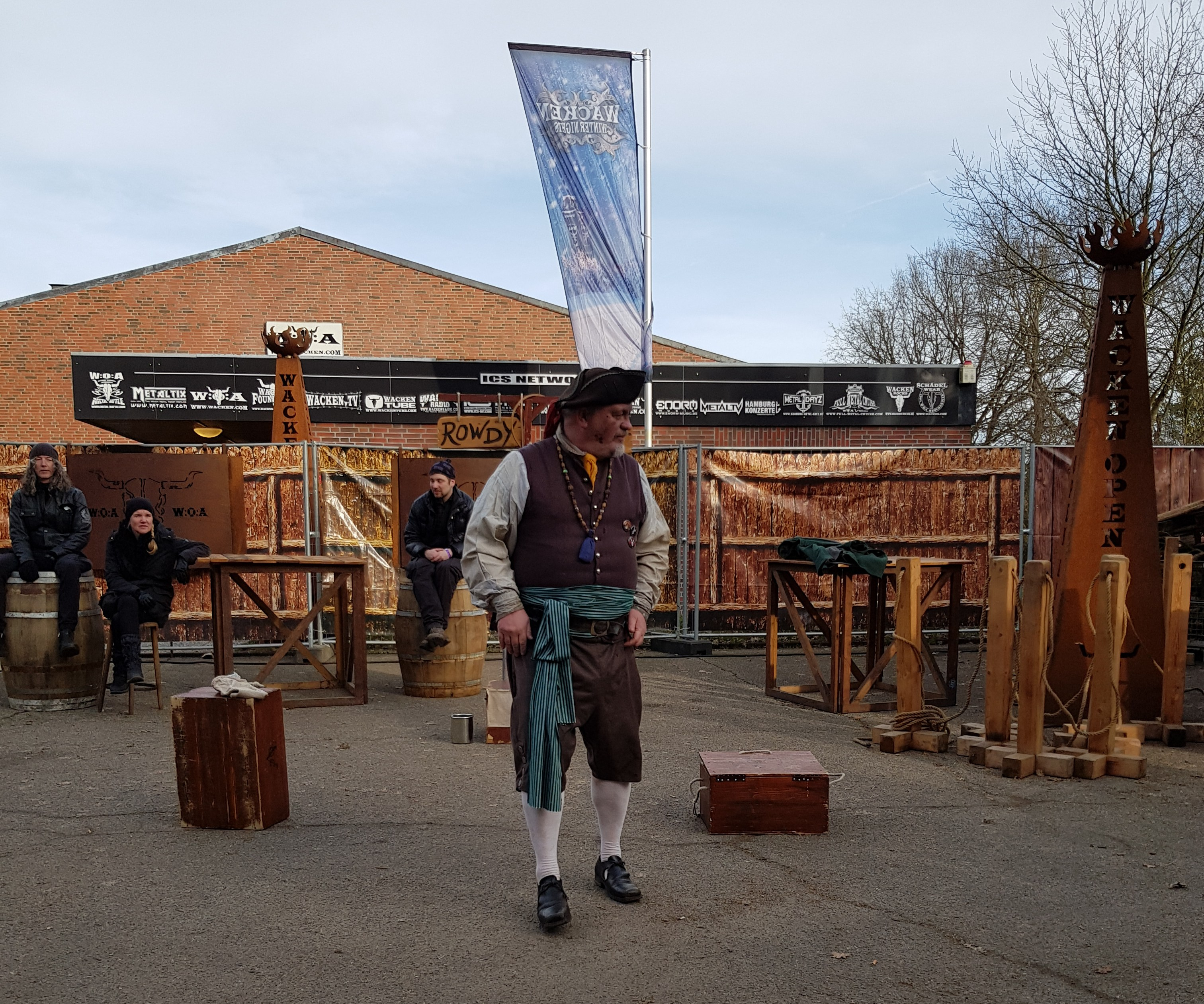 The final day of Wacken Winter Nights came around all too quickly. All those who had travelled with Argon Events packed up their stuff, and took it to the coach from 11am, and on this morning we were lucky enough to catch a lift from the campsite to the arena. After a final wander around the arena during the day, I headed to the Theatre of Grace to see heavy mahogany-ers The Dread Crew of Oddwood (Facebook, Spotify, music and merch). It was some great, jolly, funny music for the first band of the day on the main stages. There was some great crowd interaction and participation, and the drummer’s YMCA dance while the slow parts of the songs were being played was wonderful. Of course, it was some fellow Brits who started a conga line through the crowd to one particular song…